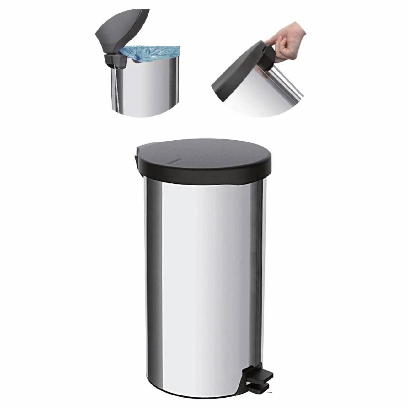 - Material de la tapa, pedal y base: Plástico