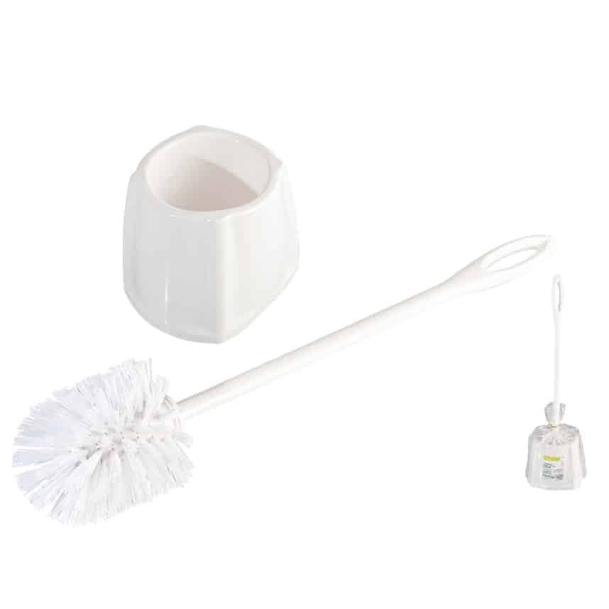Cepillo para baño con base se utiliza para limpiar la taza del baño debido a su forma que facilita la limpieza de éste por su forma y la extensión de su mango, además incluye base para colocarlo después de la limpieza.