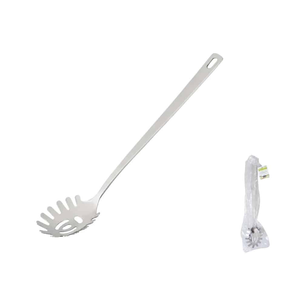 Cuchara para espaguetti es un utensilio de cocina diseñado especialmente para sacar, escurrir y servir pastas largas como espagueti, fetuccini o linguini.