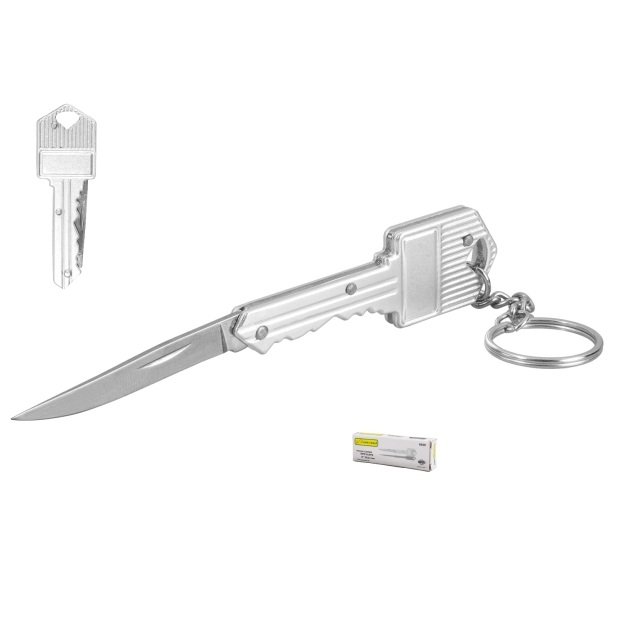 Llavero de navaja tipo llave se usa para tareas cotidianas sencillas y emergencias, como por ejemplo abrir paquetes, cortar cuerdas, quitar etiquetas, o de manera auxiliar en actividades al aire libre como campismo o senderismo. Su tamaño pequeño permite llevarla siempre en el bolsillo o en el llavero.