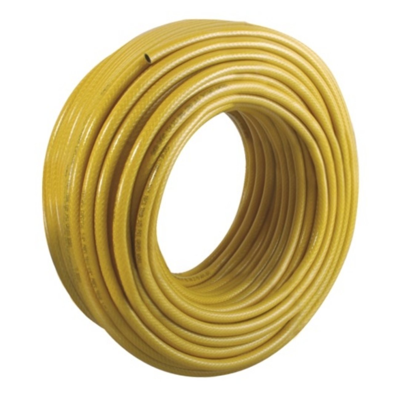 Manguera reforzada para gas fabricada con materiales plásticos que tiene mayor resistencia a la presión, dobleces y desgaste.