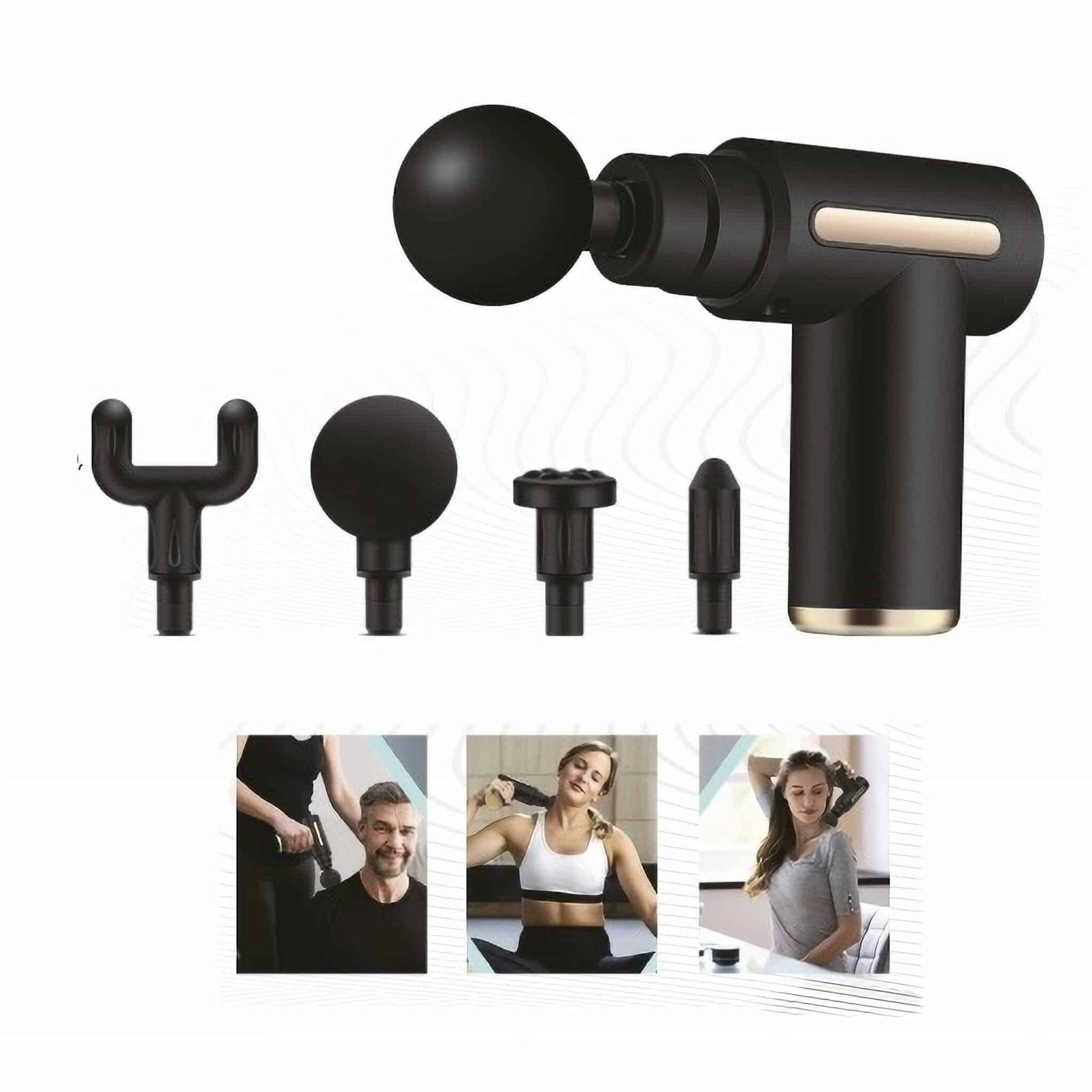 Masajeador de percusión recargable se emplea para relajar, reducir el dolor de los músculos y mejorar la circulación, mediante golpes profundos. Cuenta con batería recargable, lo que lo hace portátil, es decir, se puede llevar a cualquier sitio.